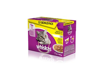 Kompletní krmivo pro dospělé kočky s kuřecím, kachním, drůbežím a krůtím masem ve šťávě.