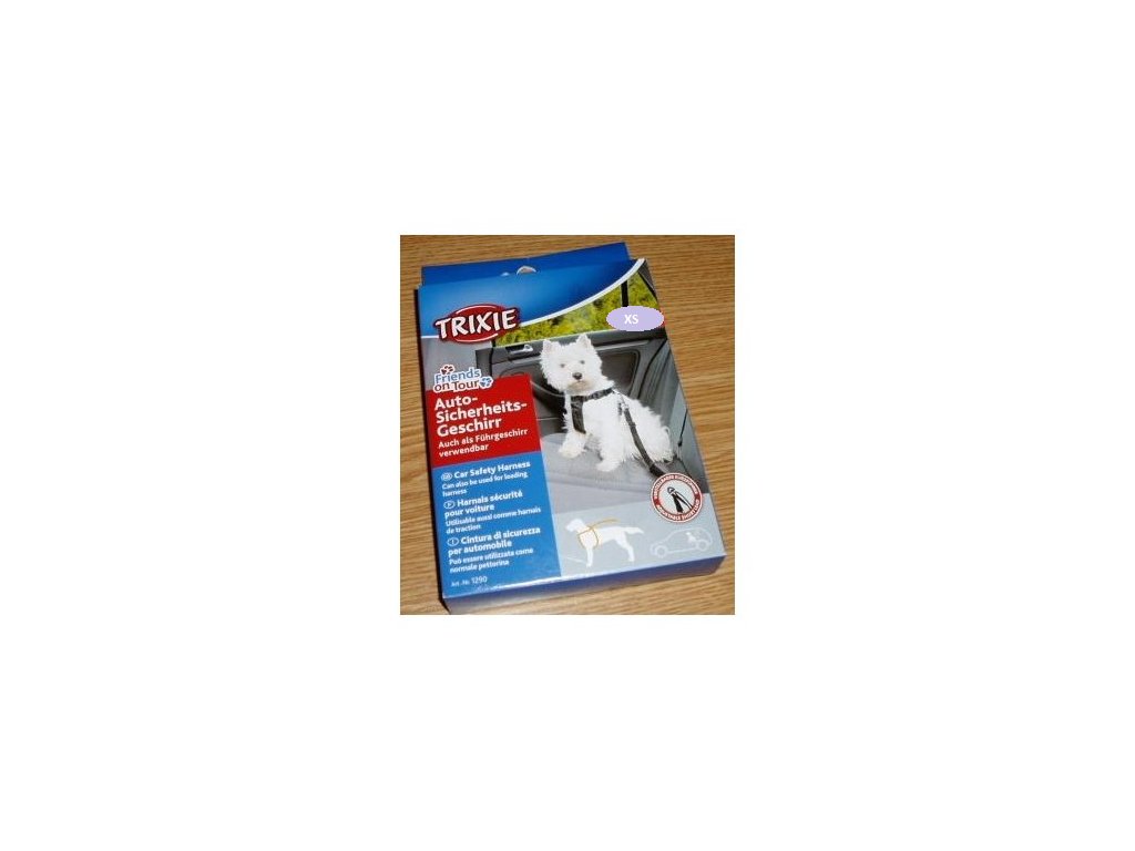 Bezpečnostní postroj do auta je vyroben z pevného nylonu. Brání psu volnému pohybu po vozidle a zároveň ho chrání a udrží na daném místě v případě prudkého brždění či nárazu. Postroj se snadno obléká a v oblasti krku a hrudníku je nastavitelný. Spona na zapnutí do bezpečnostního pásu je vhodná pro běžné typy vozidel. Výrobek se skládá z postroje a pásu, který se zasune do místa pro pásy v autě.