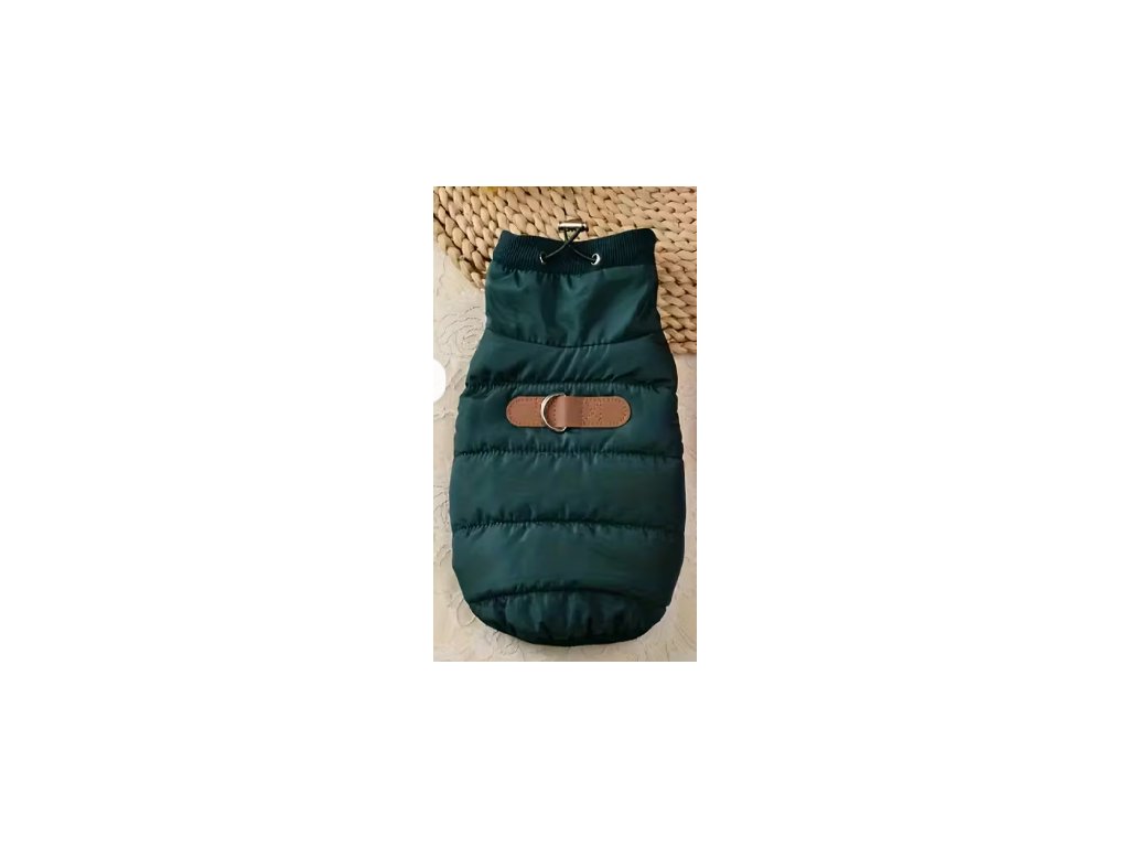 Elastický lem okolo krku s možností utažení: Tento prvek umožňuje přizpůsobení oblečku kolem krku psa, což zajišťuje, že teplo zůstane uvnitř a chladný vzduch venku. Elastický lem poskytuje flexibilitu a pohodlí při nošení.