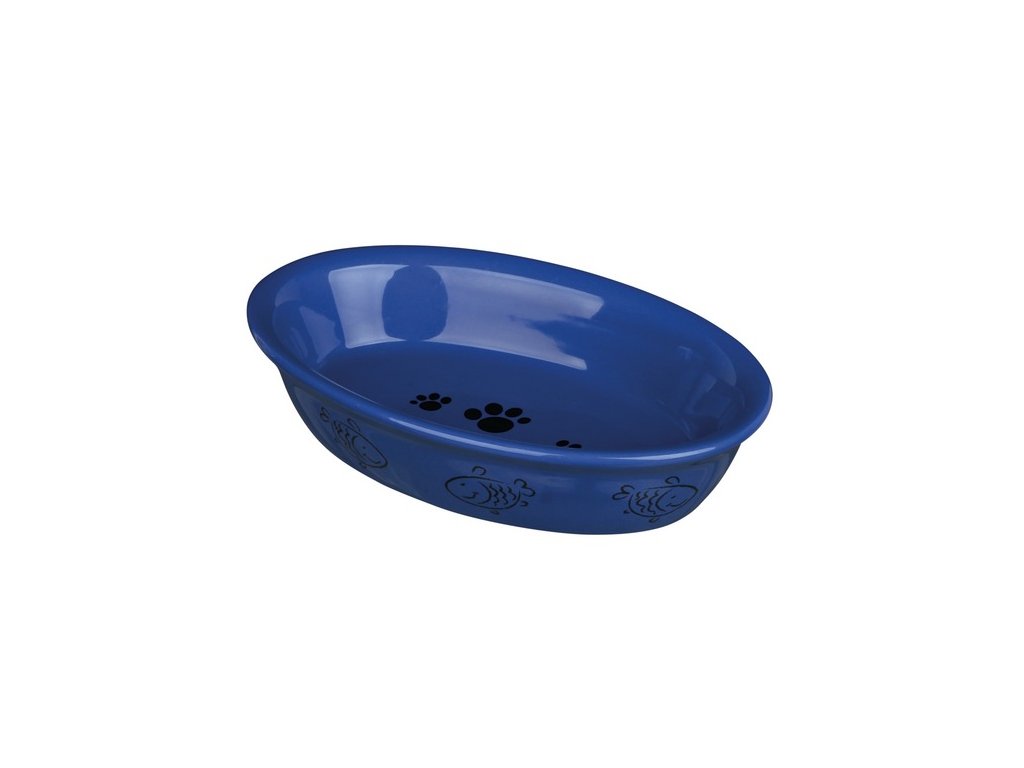 Velmi pěkně zdobená a tvarově propracovaná mistička pro kočky se stala oblíbenou mezi chovateli. Uvnitř misky najdete potisk tlapiček a zvenku po jejím obvodu rybičky. Miska je dodávána v několika barevných variantách.