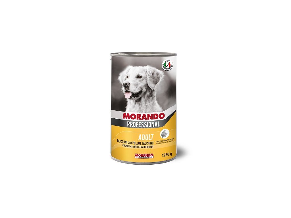 Konzerva pro psy z lehkého bílého masa. Masové kousky ve šťávě jsou vhodné pro dospělé psy všech plemen.