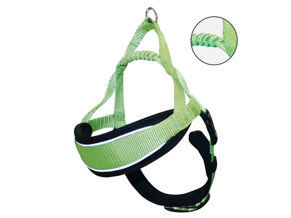 Postroj pro vytrvalou pěší turistiku je vyroben ze silného nylonu s neoprenovým polstrováním obepínajícím hruď a břicho psa. Velikost lze na břiše snadno upravit a díky pružnému pásku na zádech dokonale sedí na těle. Reflexní pásky zaručují vyšší bezpečnost při procházkách i při špatné viditelnosti.